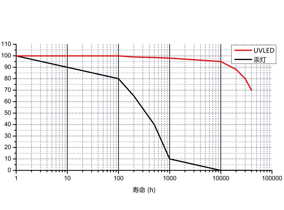 汞燈輻照設(shè)備與LED輻照設(shè)備生產(chǎn)速度曲線對比